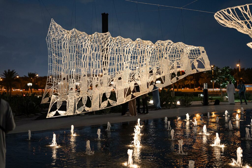 Among the showcased artworks were the piece by Saudi artist Raghad Al Ahmad titled “The Night of Destiny” at the 1971 Design Space, ‘Eternal Gates: The Journey of Manifestation’ by Emirati artist Abdullah Al Neyadi at Kalba Beach, and the collaborative artwork ‘Hand in Hand with Sharjah’ by Kaz Shirane from Japan and Diana Nin from the United States.