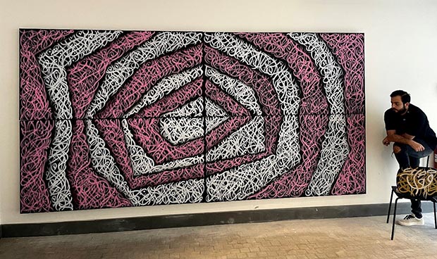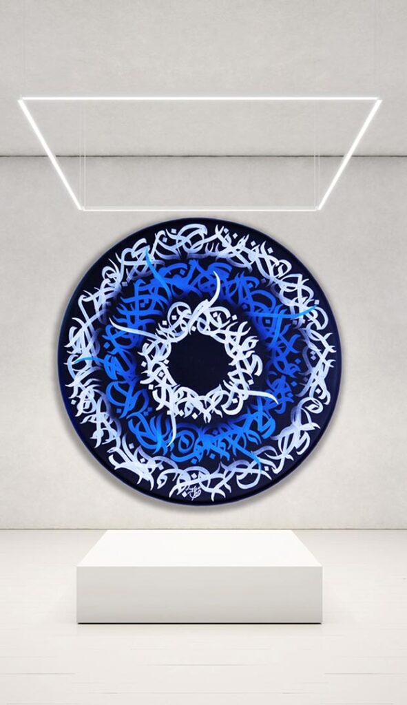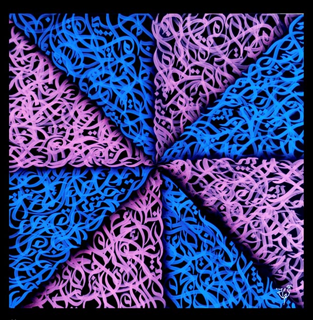 The impressive collection of 3D calligraphy by Foad Hamzeh is displayed after his artwork that was exhibited in the Art of the World Dubai exhibition early last October was well-received by the visitors. What was remarkable in that show was the interest of a large group of foreign visitors in the paintings of calligraphy painted in the style of calligraffiti.