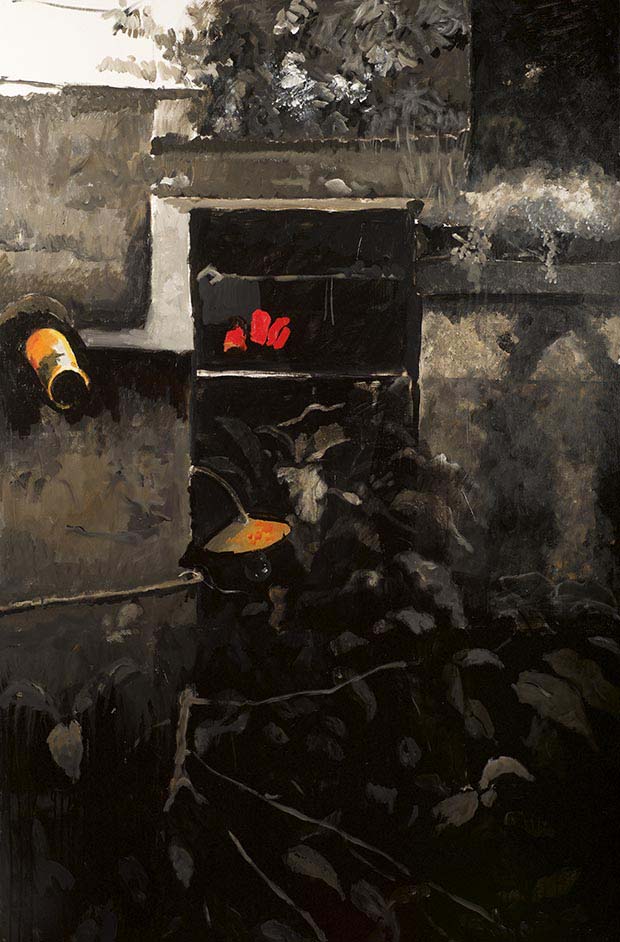 An artist with an international sensibility, Chittrovanu Mazumdar draws from an ever-shifting sea of various sources. Dramatic plays of light and colour values are visual hallmarks of his sophisticated oeuvre. Mazumdar’s imagery emerges out of daily discoveries: a word, a glance, the heartrending/blood-chilling phrase, a fleeting mise en scène – the rise and crest of body parts imprisoned in tight freeze-frame: both source and association are intensely private and sensual. In his paintings, we see contours of anatomy slipping into/emerging from non-representative fields of colour.